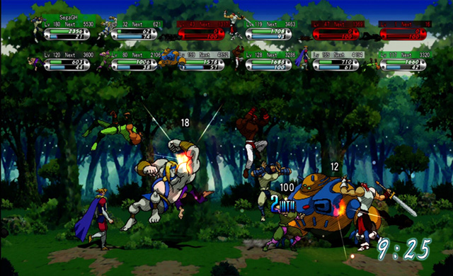 Along with the new addition of online gameplay, both story and versus modes can truly show their worth like never before. Versus mode, supporting up to 12 players online and 4 with bots locally, gives the player the ability to truly take on a whole new world of Guardian Heroes. With six modes of play in both remix and original variants, and the ability for players to create their own personal rule sets, Versus mode is an amazing experience. Gameplay online is incredibly smooth and will keep the player busy long after they have exhausted the primary story mode.